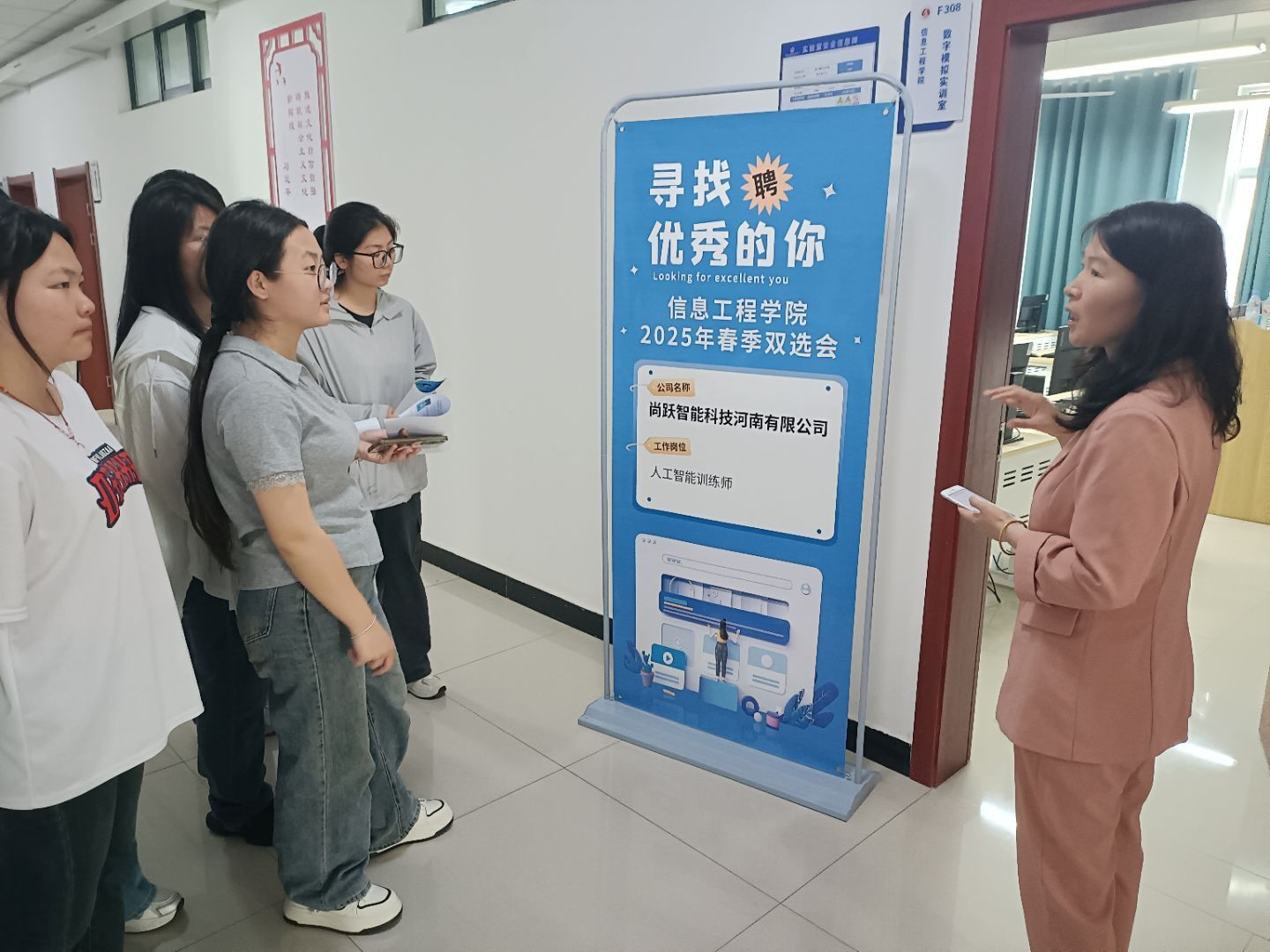 为深入贯彻落实党中央、国务院关于高校毕业生就业工作的决策部署,搭建优质就业平台,促进毕业生高质量就业,信息工程公司于2025年5月12日在开封校区北院校区F楼成功举办“青春扬帆·职达彼岸”2025年春季双选会。本次招聘会吸引了十多家企业参会,涵盖计算机应用技术、计算机网络技术、现代移动通信技术、人工智能、大数据、动漫设计、视觉传达设计等多个专业,为毕业生提供了300余个优质岗位。