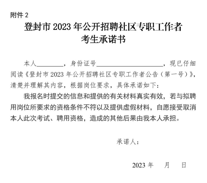 (2)报考人员在资格确认时,将审核通过的《登封市2023年公开招聘社区专职工作者报名登记表》及相关材料留存登记后,方为报名成功。