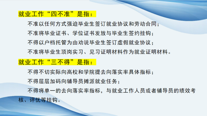 公司历来高度重视毕业生就业工作,认真落实就业“一把手”工程,建立公司领导、专职教师、辅导员、党员充分参与的就业工作推进小组。崔琳通报了截止目前2023届毕业生就业情况,强调要充分认识当前就业形势的严峻性,要求辅导员要提高政治站位,切实做好就业工作,摸排员工情况,建立台账,做好重点群体的就业帮扶工作,做好家校沟通。公司教师要继续全员参与、上下齐心整合就业资源与信息,进行高效精准对接,力争在就业“百日冲刺”行动中取得佳绩。会上,崔琳带领毕业班辅导员再次学习教育部关于就业工作的“四不准”“三不得”要求,要求所有辅导员注意工作方式方法,与员工及家长沟通过程中不得违反教育部相关规定。