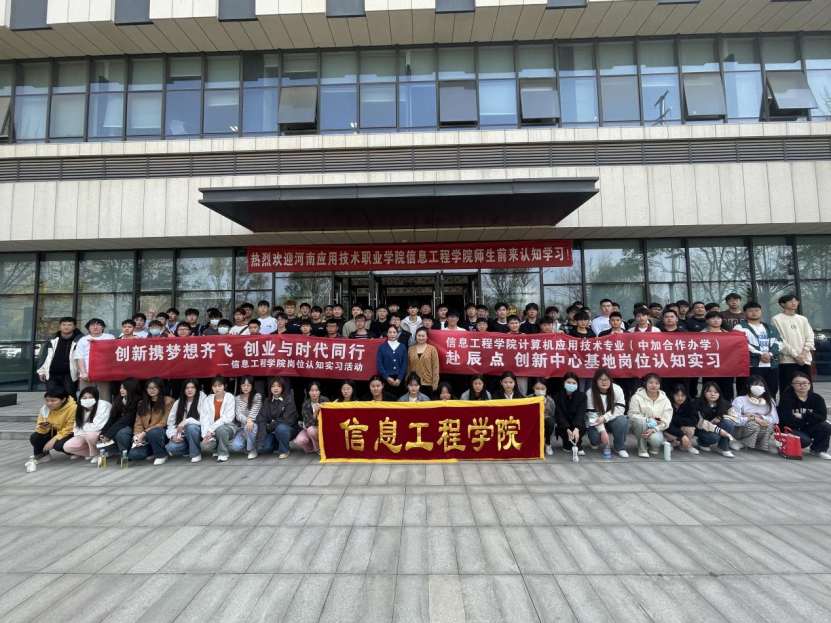 为深入贯彻国家关于加快发展现代职业教育的决策部署,提升员工对相关专业岗位的认识。2023年3月28日下午,在万小舟老师,郭梦佳老师,孙奕老师的带领组织下,信息工程公司计算机应用技术(中外合作办学)专业师生赴辰点创新中心(河南武陟)参观学习。