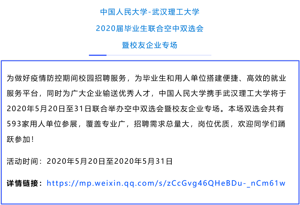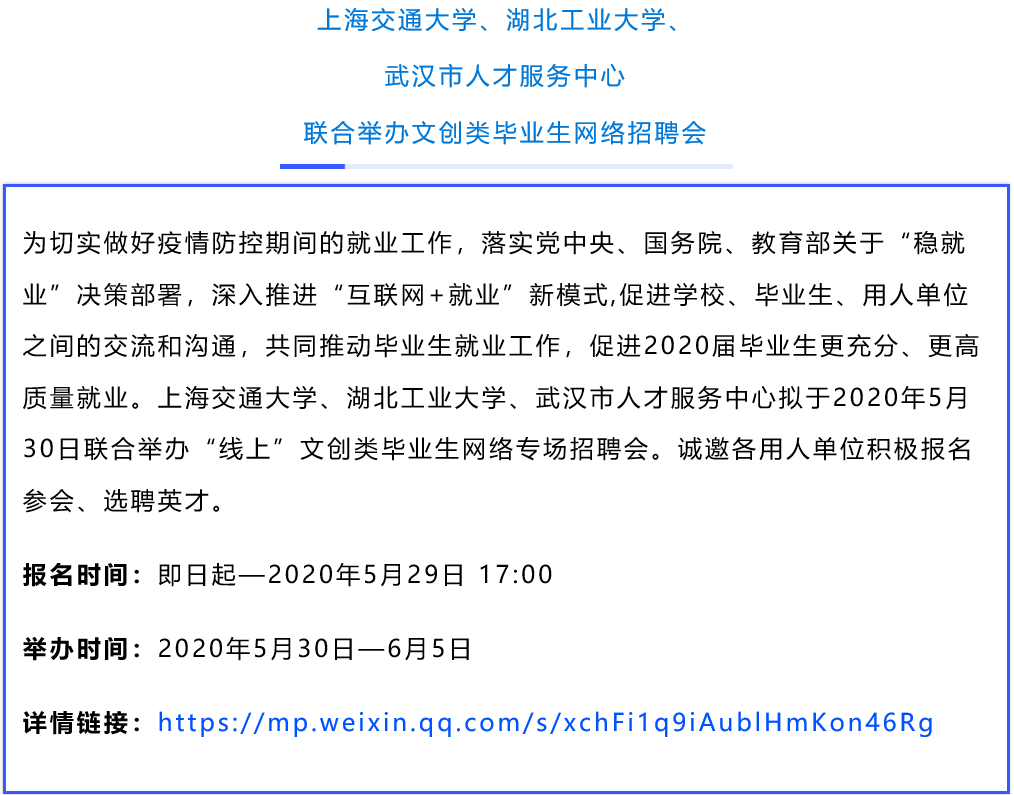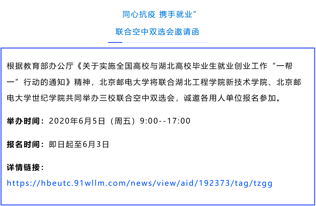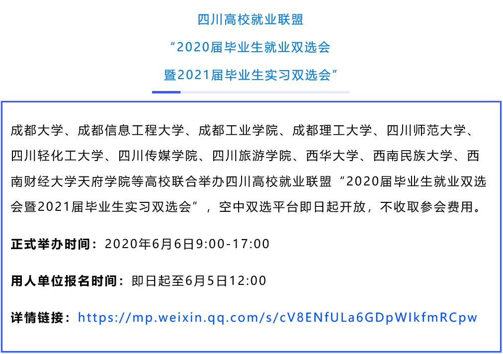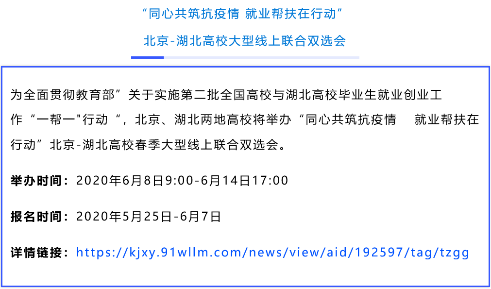 自教育部启动实施全国高校与湖北高校毕业生就业创业工作“一帮一”行动以来,相关高校积极响应。“一帮一”高校共享就业岗位信息、共同开拓就业渠道,联合举办多场空中双选会。众多联盟高校也联合起来,在用人单位和老员工之间搭建便捷、高效的供需 “云”平台。空中双选会为毕业生和企业提供人岗匹配度更高的选择。近期,17场高校空中双选会正在进行中,欢迎用人单位和高校毕业生报名参与!