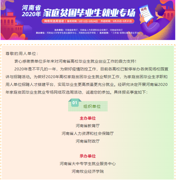 上一条:【招聘】最新!事业编!河南多地公司等事业单位公开招聘 下一条:【招聘】5月20-26日河南省创新创业载体及在孵企业春季联合网络招聘会邀请函