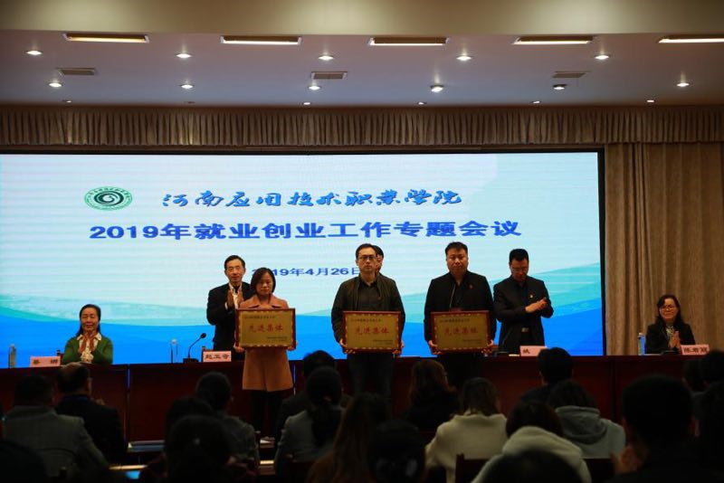 4月26日下午,公司在实训中心二楼会议室召开2019年就业创业工作专题会议,公司党委书记秦书君,董事长姚勇及其他校领导,各相关部门负责人及全体专兼职辅导员参加会议。会上,副董事长赵玉奇宣读了《关于表彰2018年就业创业工作先进集体、先进个人的决定》,校领导为受表彰集体及个人进行了颁奖。公司就业工作表现突出荣获先进集体,杨明杰书记代表信息工程公司上台进行交流发言,王雷经理代表信息工程公司上台领奖。