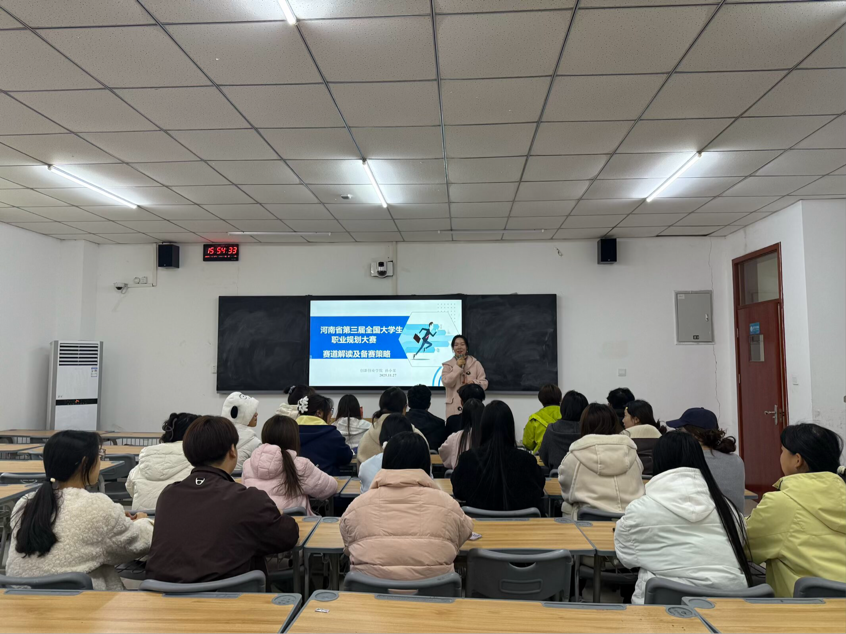 培训伊始,孙小果职围绕职业规划书的结构搭建、PPT制作重点、现场答辩的礼仪规范、临场应变方法等核心问题,结合往届大赛优秀案例,层层拆解、细致讲解,为同学们提供了可操作、易实践的备赛策略,增强了同学们的备赛信心。
